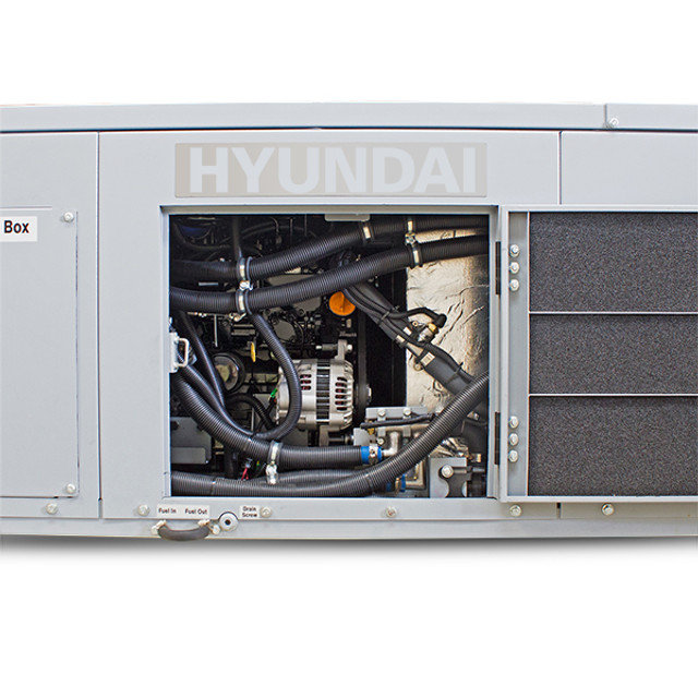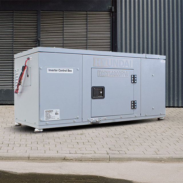 Hyundai 14kW Onboard Vehicle Diesel Generator The DHY14000RVi is a compact and lightweight diesel generator designed to be permanently mounted on top of a large motorhome, a race truck, a mobile billboard vehicle or specialist vehicle. Providing a convenient and cost-effective source of power, this generator has an impressive maximum output of 14kW. Powered by a 4-stroke OHV water-cooled 3TNV76 diesel engine, the DHY14000RVI is able to produce up to 14kW and is more than capable of powering televisions, large heaters, air conditioning, air pumps for inflatable beds, hairdryers, laptops, phone chargers, lights, etc.   Motorhome Generator This diesel generator ideal for use with your motorhome or sports home, allowing you to take both modern luxuries and home comforts with you wherever you go.   Able to produce a pure sinewave output, this means that this petrol generator can safely power all sensitive electronics, such as TVs, laptops, etc, without the risk of damaging or overloading them.   Easy To Use This generator is really easy to use, making it extremely popular for powering family holidays, and it’s also built with low maintenance requirements for cost-effective, fuss-free power whilst away from home.   Safe-To-Mount Quiet Generator The digital control panel is mounted inside the vehicle - connected to the generator via an 8m USB cable - allowing you to start and stop the generator without having to go outside into the elements. This control panel also allows you to monitor fuel level, oil level, frequency, AC voltage, power usage, battery voltage and hours run.   Delivering low noise, extremely low vibration and excellent fuel economy at 291g / kw/h @ 75% load, the DHY14000RVI ranges from 10kVA~30kVA with a variable speed operation of 1600rpm - 2400rpm.